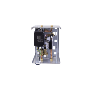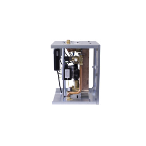 The Module incorporates a brazed plate stainless steel heat exchanger, a patented two way valve with stepper motor, a circulator pump, a flow sensor and electronic temperature controls.